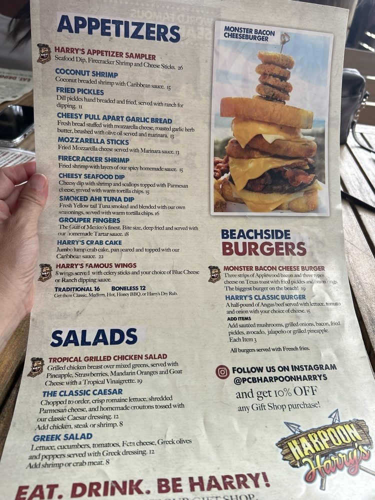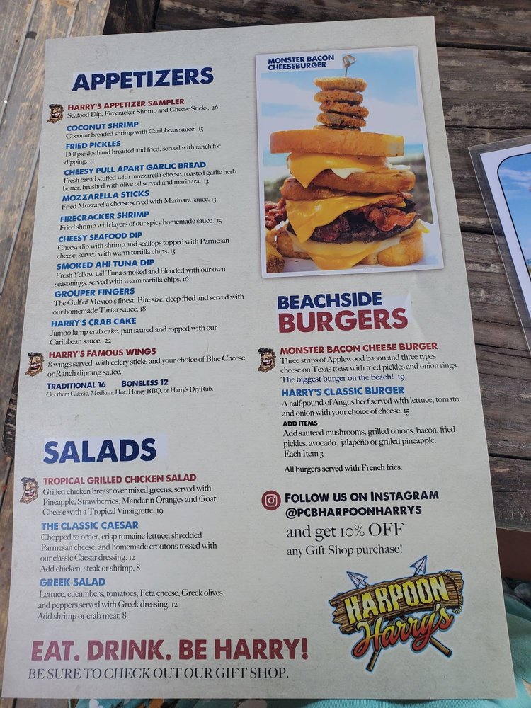 Welcome to Harpoon Harry's Beachfront Restaurant, a hidden gem in Panama City Beach, FL, offering a unique blend of steakhouses, American, and seafood cuisine. This beachfront establishment provides a range of amenities including outdoor seating, wheelchair accessibility, and even accepts cryptocurrency. The menu boasts seasonal seafood dishes like the Grouper Filet and Jumbo Seafood Platter, along with savory starters such as Mozzarella Sticks and Smoked Ahi Tuna Dip. Not to be missed are the Big Burgers like the Monster Bacon Cheese Burger and Harry's Classic Burger. The atmosphere is casual and inviting, perfect for a laid-back meal with family or friends. With stunning views of the beach, friendly staff, and a variety of delicious dishes to choose from, Harpoon Harry's is a must-visit destination for a memorable dining experience by the sea.
